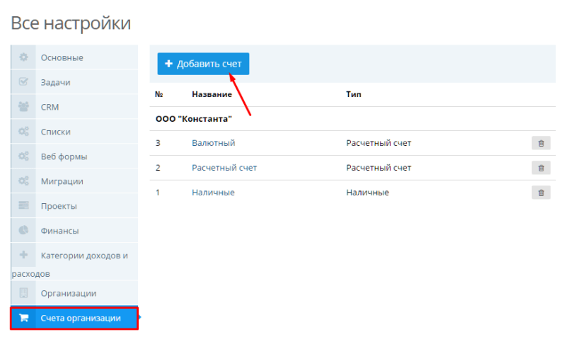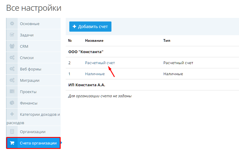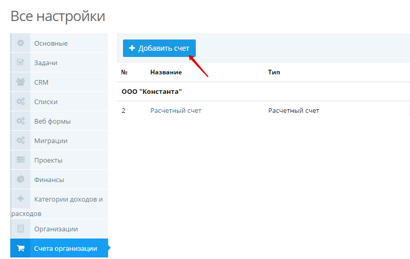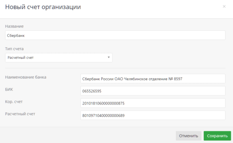 Теперь администратору портала необходимо создать расчетный счет для организации, который будет отображаться в счетах.
