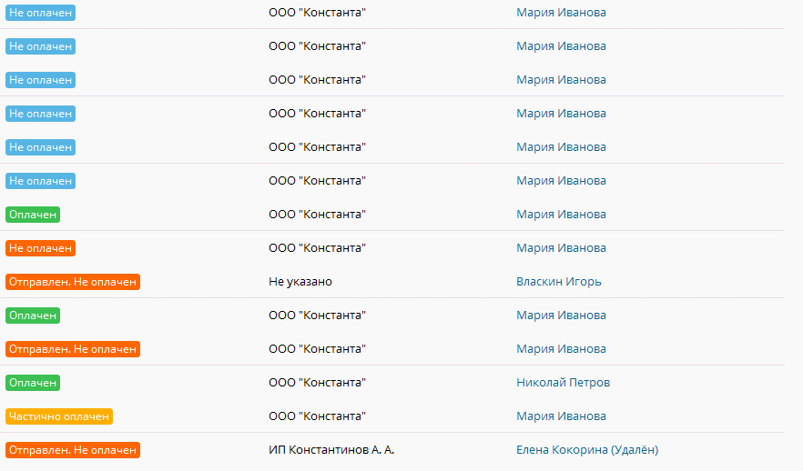 Когда-то в компании выставлением счетов занималась бухгалтер Мария. Но в один прекрасный день количество продаж в «Константе» увеличилось до 10 в день, а штат сотрудников вырос до 10 человек. Руководство столкнулось с необходимостью переложить эту обязанность на менеджеров по продажам.